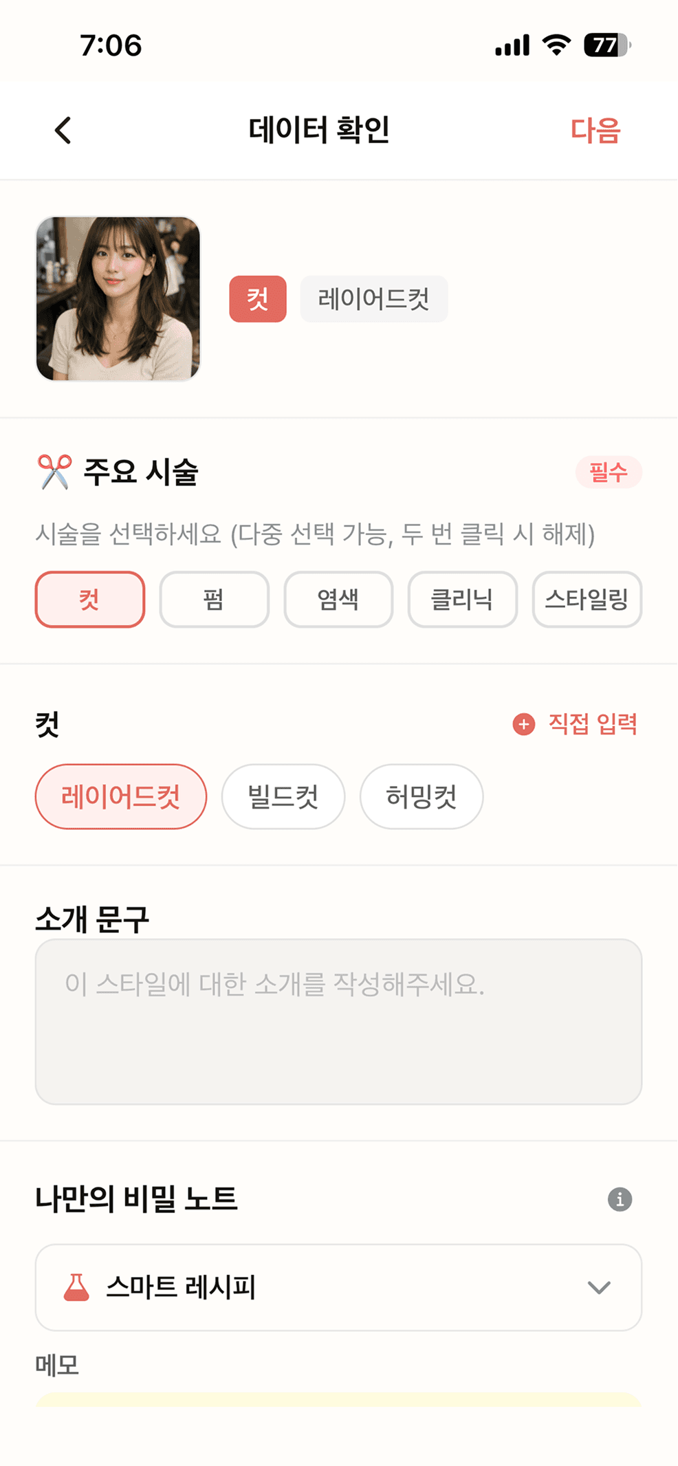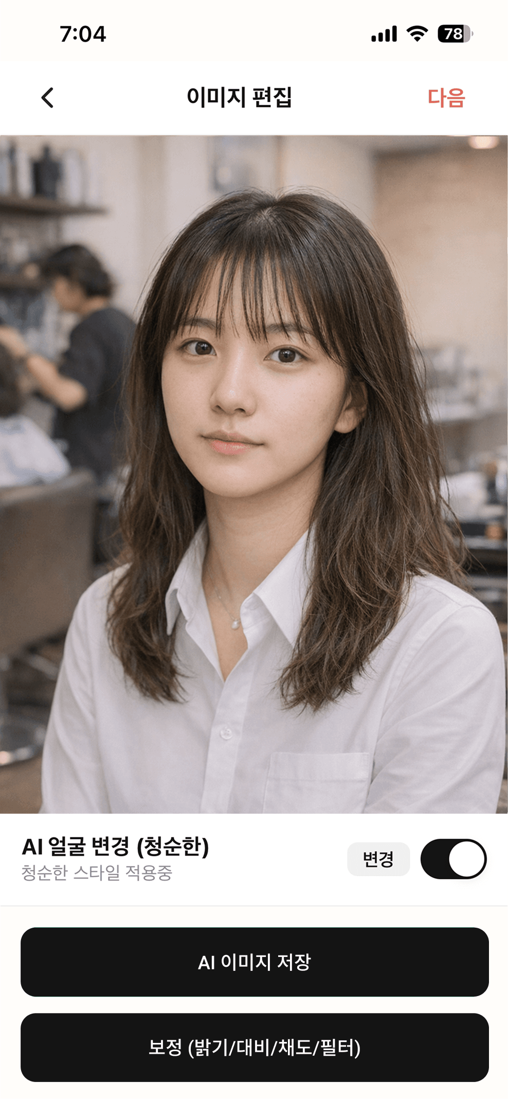 AI 얼굴 비식별화부터 AI 인스타 작성 도우미, 포트폴리오, 고객 히스토리 관리까지. 헤어 디자이너의 모든 것을 하나의 앱에서.