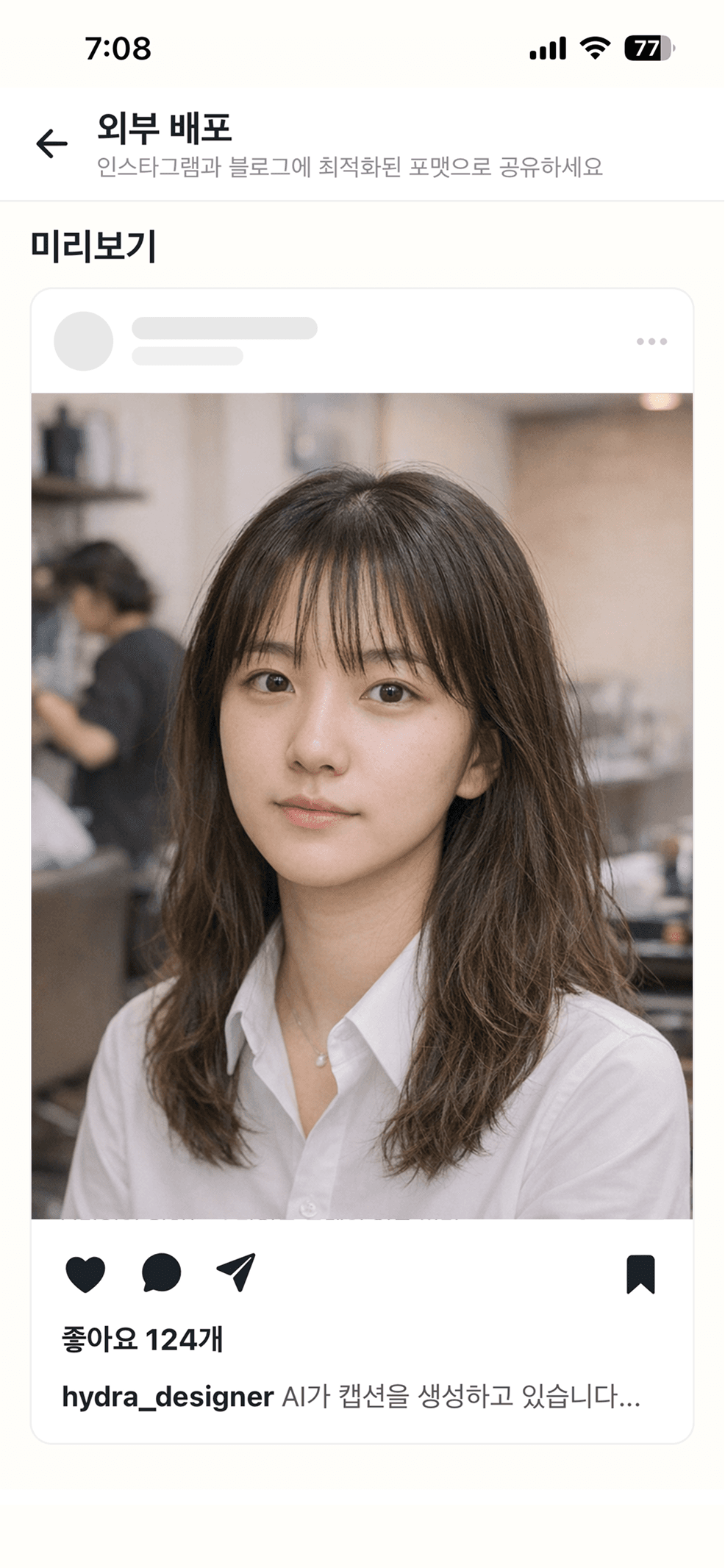 “AI가 인스타 업로드용 글이랑 해시태그를 자동으로 정리해주니까 진짜 편해요. 올릴 때마다 고민하던 시간이 줄어서 포폴 업로드를 훨씬 꾸준히 하게 됐어요.”