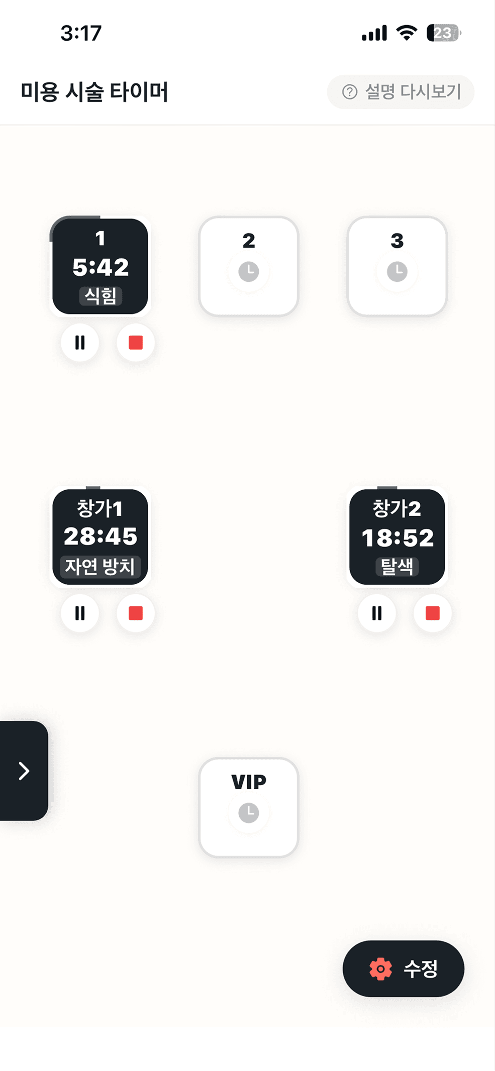 여러 고객의 시술 시간을 동시에 관리하고 알림을 받으세요.